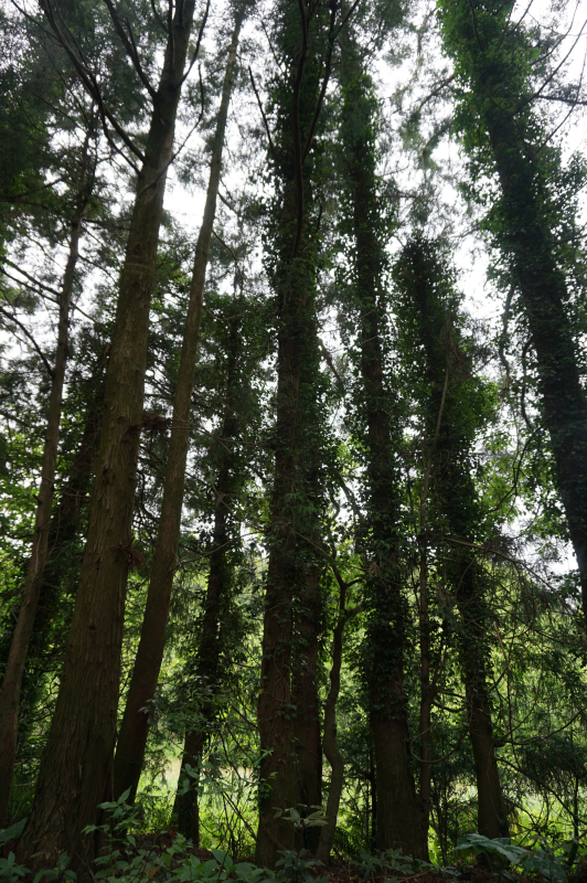 하늘을 찌를듯한 전나무들이 일렬로 쫙 서있는데